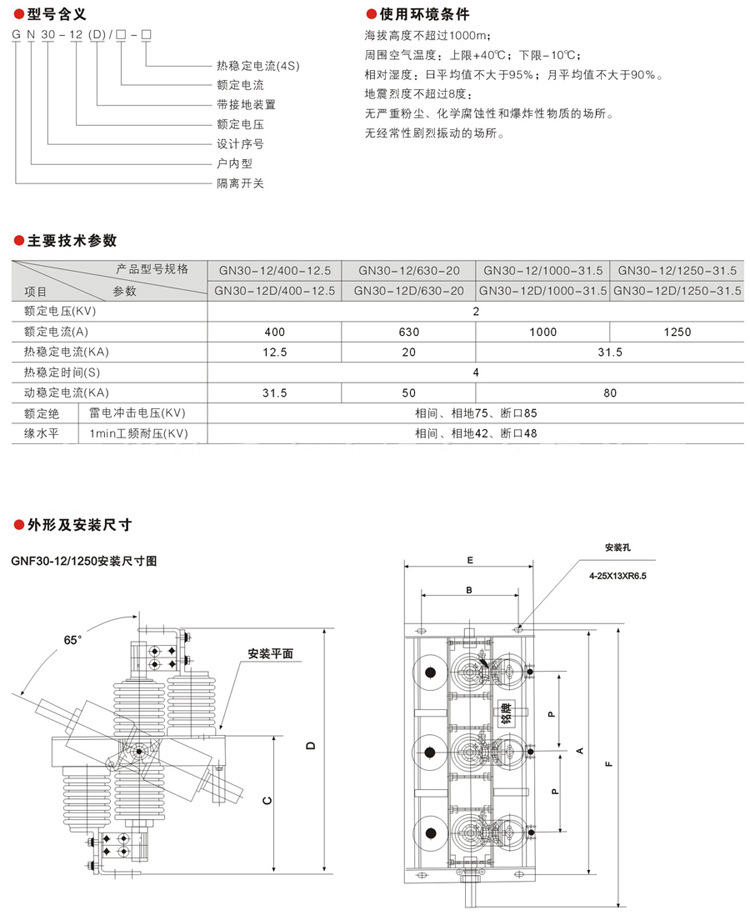 GN30-12型旋轉(zhuǎn)式戶內(nèi)高壓隔離開關(guān)