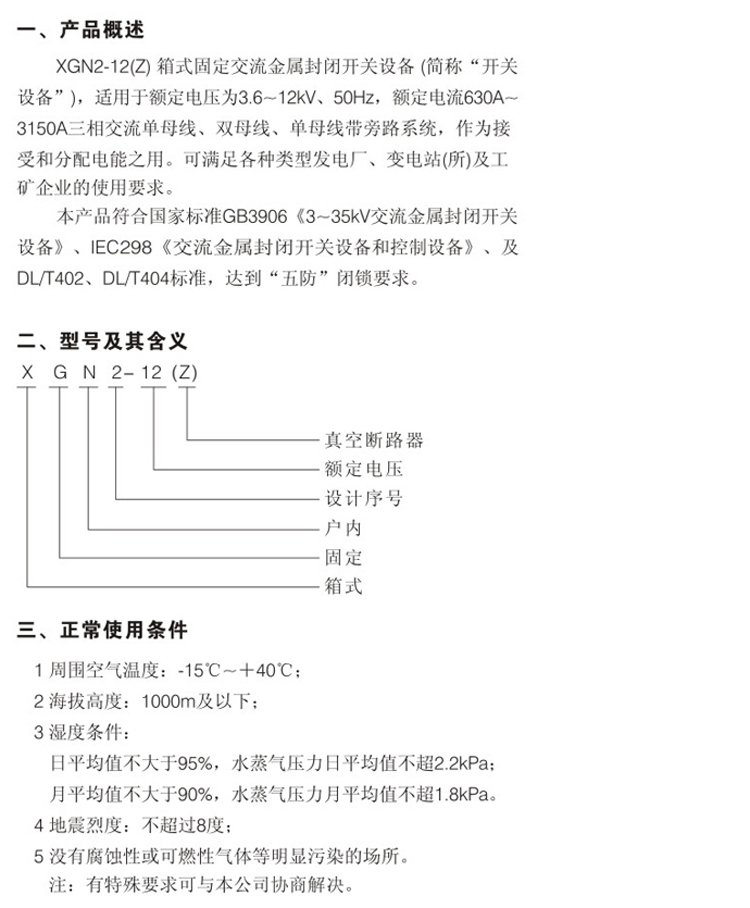 XGN2-12(Z)箱型固定交流金屬封閉開關設備