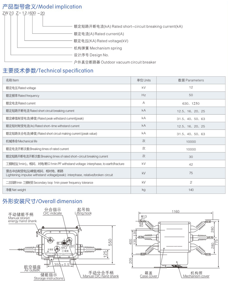 ZW20Z-12戶外高壓真空斷路..