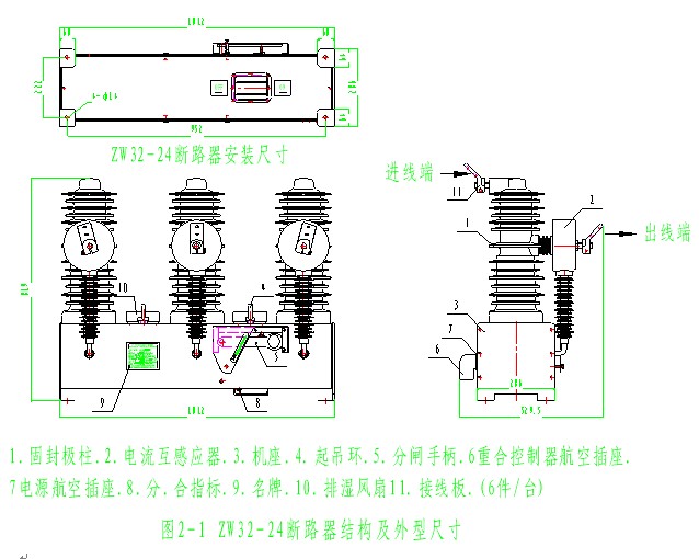 ZW32-24C型交流高壓斷路器是電站或柱上安裝的戶外開關設備。主要用于額定電壓24Kv.22Kv.20kv.三相交流50/60Hz的輸配電系統(tǒng)中,開合額定電流、短路電流.主要用于城市,農(nóng)村配電網(wǎng)及20-24kV變電站。此設備二次控制線航空接頭解開線后可與重合控制噐連接,使產(chǎn)品方便升級為自動重合器。